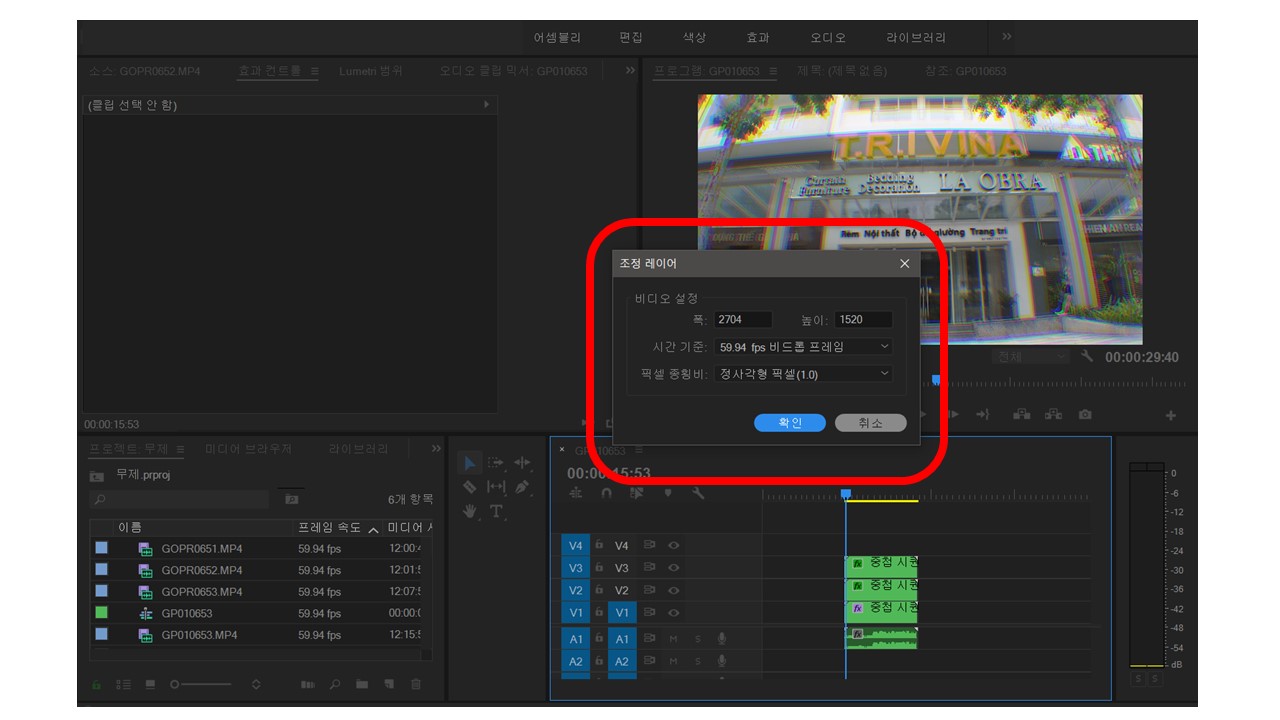 조정레이어 추가방법의 장점은 편집을 다 해놓고 하나의 파일로 저장해놓고 그 편집했던 내용들을 나중 영상 파일에도 적용시킬 수 있다는 장점이 있습니다. 조정레이어가 뭐냐면 영상 파일같은걸 하나더 만드는건데, 그 레이어에는 영상 편집 기능만 들어갑니다. 영상의 옷, 모자 같은 느낌이라고 보시면 이해하기 편하실 거에요